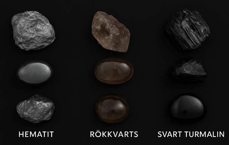 De hjälper oss att känna oss närvarande, lugna och trygga, och kan användas för att rensa bort tung energi eller negativitet. Dessa stenar arbetar nära kroppens lägre chakran och hjälper till att återställa fysisk balans.